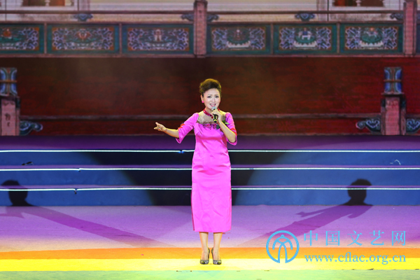 蒙古族青年歌唱家、中国文艺志愿者协会理事乌兰图雅表演歌舞《串烧》。中国文艺网 白伟 摄