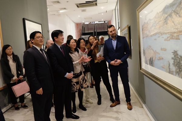 中国美协副秘书长陶勤引领中外嘉宾参观展览 丁薇摄