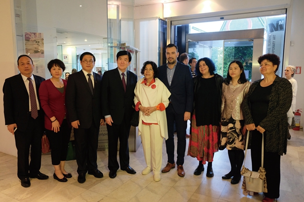 中国文联副主席李屹等中希嘉宾在展览开幕式上合影 丁薇摄