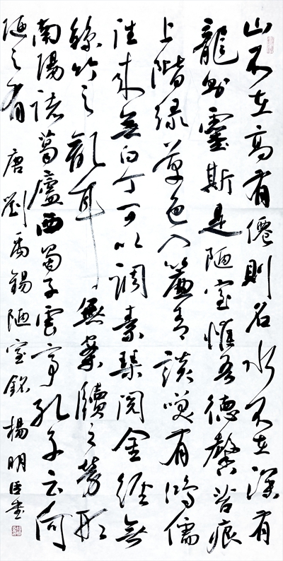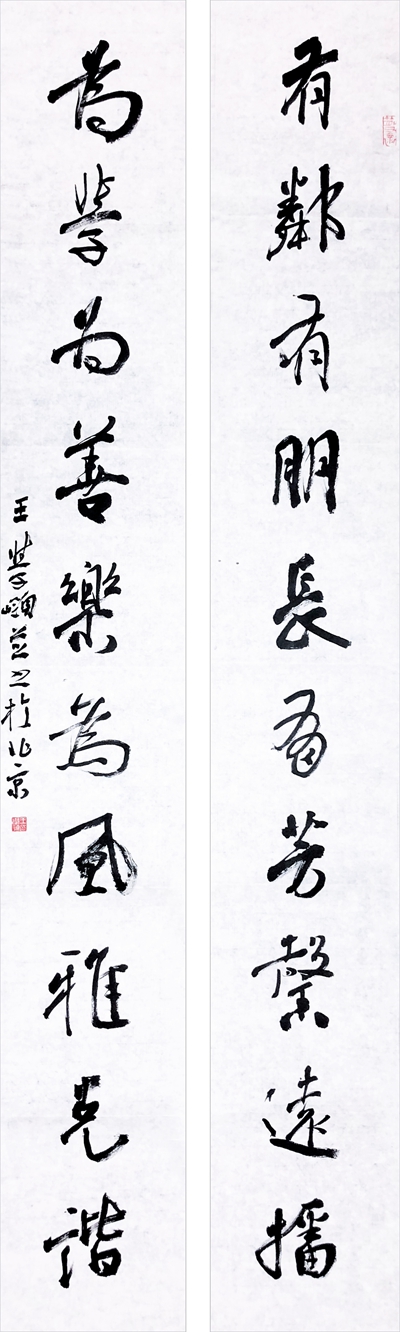 中阿书法艺术都讲究节奏与韵律,前者以运笔的提按起伏和墨色的深浅变化来实现,后者则把相同斜度的字词进行重复有序的排列。对于中阿书法艺术而言,“平衡”都是相对存在的,是诸多不平衡因素依照美的原则组合后达到整体的、全局的平衡。
