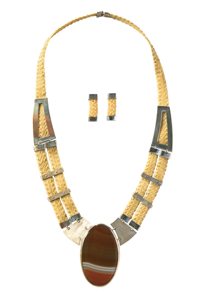 项链耳环套装 2008 银、生皮革和石头(玛瑙) 0.6×20