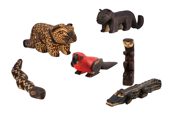 姆比亚瓜拉尼人手工雕塑 美洲虎、美洲虎、蛇、鹦鹉、猴、凯门鳄