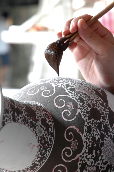 自东汉末年开始,景德镇就开始槎窑、柴窑烧瓷,至今已有近两千年的历史。景德镇瓷是高温瓷,用浮梁的柴火烧,怎么能烧到1300摄氏度以上?但它偏偏就烧到了1300摄氏度。因为景德镇的镇窑窑膛很大,烟囱很高,烟囱在窑膛里拉出了一个火道,在火道上是1300摄氏度,其他地方则是1200摄氏度、1100摄氏度……所以,瓷器放在窑内的位置就很有讲究了。什么类别的瓷坯,该放在什么位置,没有任何仪器测控,就全要凭满窑师傅当时根据季节、气候和自身的经验来决定。而整个庞大窑弄,容纳数千件瓷坯,要让其成为美丽的瓷器,其锻烧的火候掌握则是靠“把桩师傅”的经验判断。这种神奇的技术,一直延续至今,它包含着深厚而精彩的陶瓷文化内涵。