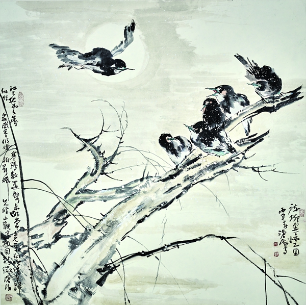 自我生命体验的自由表达是中国绘画“写意性”的旨要所在,但是这种自由表达并非是笔墨的胡涂乱抹,画家主体状态的洋溢仍需依据并借助法则与秩序。尹沧海认为,辩证地认识、处理自然秩序与艺术秩序的关系是极为重要的一个方面。“掌握自然之理论与知识,对于绘画过程来讲是必要的。但是有了这些理性知识,并不等于我们就能够画好一幅画,重要的是在作画时以‘坐忘’‘离形’‘去智’的非分解性、概念性的纯知觉活动,对于自然之理进行化解与融通。在这样创作状态下所传达的艺术精神,虽然是一己的个性表现,却能够直达物象本质,因而,也就体现了自然之秩序,并表达了艺术秩序。”他说。