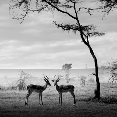 晨曦中,草原披着一层轻柔的薄雾,眼前是一幕非常温馨的画面,在非洲的茫茫旷野上常常能看到一些感人的让人爱怜的场景。