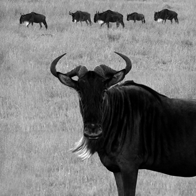 角马 — 东非大草原数量最庞大的物种,每年东非野生动物大迁徙的主角,喜欢群居,每群都会由一个强壮的雄性角马率领。