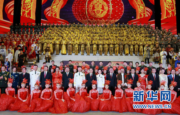 王刚、王乐泉、王兆国、王岐山、回良玉、刘淇、刘云山、刘延东、张德江、徐才厚、郭伯雄、何勇、令计划、李建国、梁光烈、马凯、孟建柱、李兆焯和中央军委委员陈炳德、李继耐、廖锡龙、常万全、靖志远、吴胜利、许其亮观看演出。