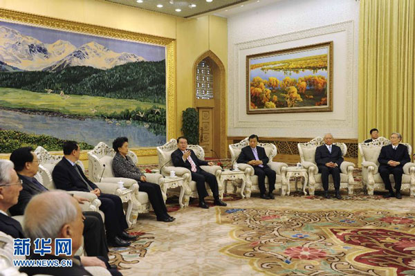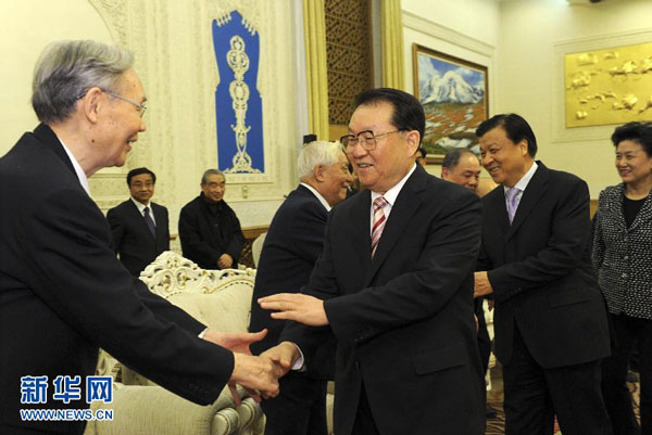 1月15日,在中华民族传统佳节春节即将到来之际,中共中央政治局常委李长春在北京人民大会堂看望马克思主义理论研究和建设工程咨询委员。新华社记者 饶爱民 摄