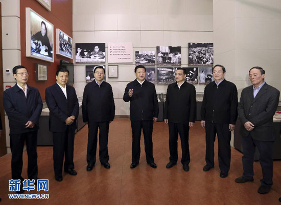 11月29日,中共中央总书记、中央军委主席习近平和中央政治局常委李克强、张德江、俞正声、刘云山、王岐山、张高丽等来到国家博物馆,参观《复兴之路》展览。新华社记者 兰红光 摄