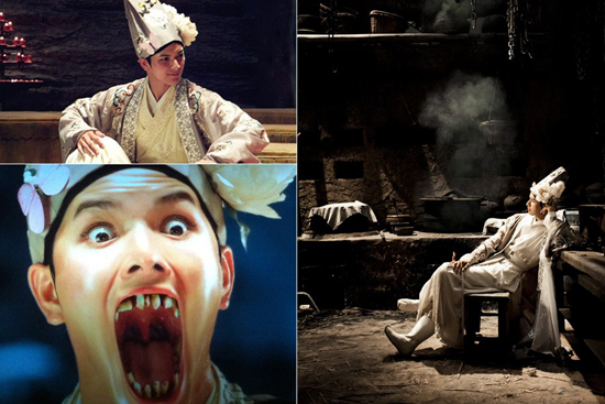 一向贪吃、贪睡、没啥本事的猪八戒在《降魔篇》中背负起了血海深仇,因为妻子与情夫通奸将其杀害,所以化为了一只愤怒的猪妖,猪妖憎恨世上所有帅哥和迷恋帅哥的女人,却也将自己装扮成鬼一样的美男子,不过扮美男时候不能说话,如果你非要让他说,他就变成了上图的模样。