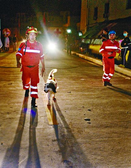 搜救队员和搜救犬 夏宏君 摄
