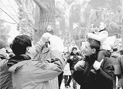 北京地坛庙会,许多游客全家出动。王昊男摄