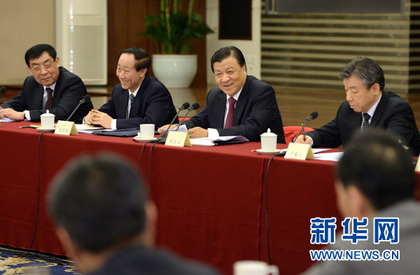 3月4日,中共中央政治局常委、中央书记处书记刘云山看望出席全国政协十二届二次会议的社会科学、新闻出版界委员并参加讨论。新华社记者马占成摄