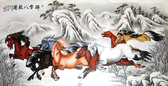八骏图(宣纸刺绣) 顾玉纯