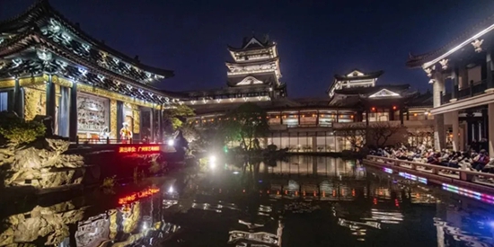 粤剧艺术博物馆广福戏台的夜场粤剧演出,观众与演员隔湖相守,共同享受戏韵魅力(图源:求是网)