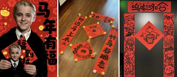 对于新一代“年味主理人”来说,年货已经从过去的实用补给逐步转变为情绪价值和自我表达的情感载体。年初,“哭哭马”玩偶意外爆火,成为了年货新宠;电影《哈利·波特》中的角色马尔福成为“中国马年吉祥物”,衍生出了“马尔福”春联、“马尔福”冰箱贴等新春装饰品;春联也不再墨守成规,在“年味主理人”的奇思妙想下变身成为 “快乐弹幕”.......这些带着笑点和情绪的新年文创产品,用梗、用设计、用情感做串联,让年轻人从“贴春联”转向“玩春联”,也让春节从“家庭的团圆场”拓展为“自我的表达场”。