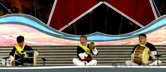 【作品介绍】朝鲜族农乐舞历史悠久,是农民在田间地头祈求丰收、庆祝丰年的重要仪式,承载着朝鲜族人民对土地的热爱、对劳动的歌颂,而“长短”,在朝鲜族音乐中意为“节奏、节拍”,是农乐舞的灵魂所在。《农乐长短——庆丰乐》是一部以朝鲜族传统农乐舞为基础的创新之作,作品保留了农乐舞最本真的“四物”,以长鼓、圆鼓、锣、钲作为核心乐器,以三节拍为基础,将田间地头自由奔放的广场表演凝练为舞台艺术,同时,创作者大胆融入高亢嘹亮的唢呐独奏,形成“四物一唢”的独特音色组合。打击乐的铿锵与唢呐的悠扬交织,既是对传统农乐节奏的精准传承,又是对现代舞台美学的艺术升华。