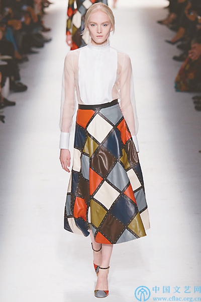 此后的几年里,蒙德里安元素开始越来越受到时尚界的青睐。2013年春夏,蒙德里安的经典方格开始被设计师们重新排列、组合,并加以更多的配色让成衣既时尚又好穿。特别在配饰上,香奈儿、芬迪都相继推出蒙德里安色彩的包袋。一向以精美剪裁、奢华细节著名的华伦天奴也在2014年的秋冬秀场上展示了蒙德里安的方格元素。当半裙、风衣、连衣裙被黑线分割成等大的正方形时,人们不禁又有了似曾相识的感觉,仿佛是“低饱和度”版本的蒙德里安再现,少了明艳与活泼,却增加了稳重与优雅。在蒙德里安的启发下,设计师们也在拼接设计的道路上越走越顺。