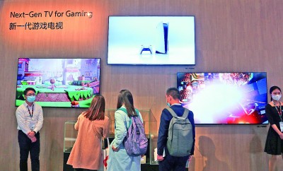 上海,中国家电及消费电子博览会上的游戏电视受到消费者关注。陈玉宇摄/光明图片