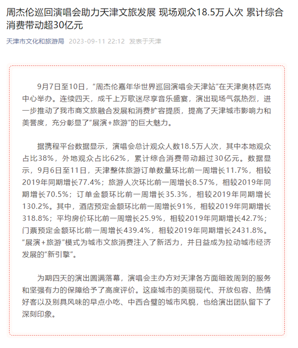 周杰伦海口站和呼和浩特站的演唱会期间,海口酒店和呼和浩特酒店订单分别同比增长166%和580.7%,整体出行订单分别同比增长97%和152.6%;