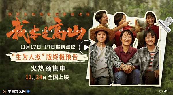 据悉,影片《我本是高山》将于11月24日全国公映,目前正在火热预售中,11月17日至11月19日全国24城超前点映开启。