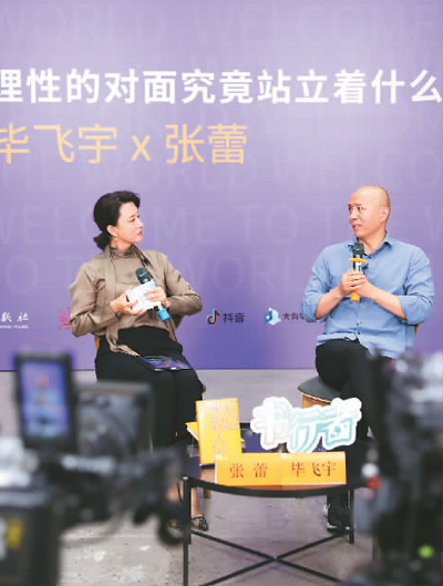 本文作者之一、《书行者》节目主理人张蕾(左)在《书行者》节目现场。