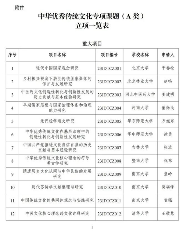 日前,教育部公布中华优秀传统文化专项课题(A类)立项结果,共计立项122项,其中重大项目24项;重点项目98项。一起来看名单——