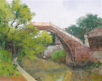 油画《运河古桥》,作者魏海彬。