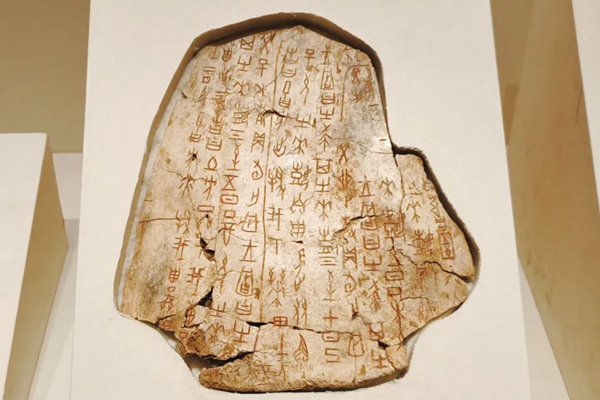 2023年3月10日,北京,中国国家博物馆“古代中国”展览,众多精美国宝文物展出亮相。图为殷商时代甲骨文。