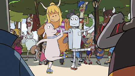 《机器人之梦》的主角不是人类,而是一只狗和一个机器人,且围绕不分性别的二者展开叙事,既是对这种跨越物种的友谊的展现,也是对于情感、成长、亲密关系以及命运无常的深入探讨,也使得人物关系有了更多可解读的空间。影片讲述了二者之间纯真的情感经历。20世纪80年代,小狗瓦伦独居在美国曼哈顿,性格内向,甚至有些孤僻,整日宅在家中,过着单调、重复的生活,一个人吃饭、一个人看电视、一个人打游戏、一个人睡觉……仿佛当下的“社恐青年”一般,它把孤独当作常态,疏离于人群与社会。直到有一天,瓦伦无意中看到邻居家中情侣间温馨、亲密的画面,那颗孤独的内心终于受到触动,瞬间也渴望拥有同伴、拥有一份真挚的情谊。很快瓦伦通过一则电视广告订购了一个机器人,就这样机器人闯入了瓦伦平淡无奇的生活,为它的生活注入了新的活力与色彩。自此两个看似毫不相干的生命在生活中相遇,并产生了深厚的羁绊:从相互陪伴、形影不离,到亲密无间、彼此温暖,再到意外分离、遗憾错过,小狗和机器人之间的命运纠葛深深牵动着观众的心弦。