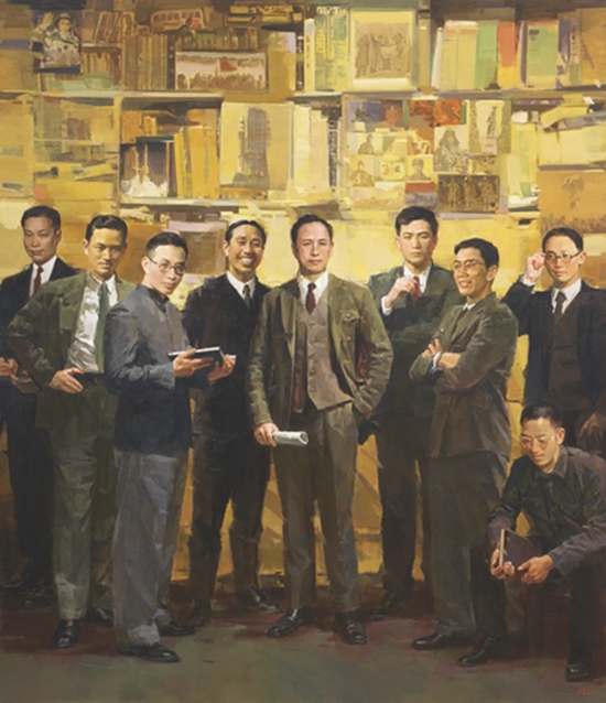 绘画语言作为美术研究的重要课题,在近年国家组织的重大历史与现实题材美术创作工程,以及近两届全国美展中被频频提及。创作者们关注的不是漫无涯际的语言拓新和“探险”,而是聚焦人类价值观念中可以反复锤炼和再造的命题、艺术修辞中可以不断勃兴和深化的命题。重大主题创作特别是现实题材创作,与大时代的风云相连,与人性的光华相连。它需要“修辞立其诚”,需要建构与其内涵高度一致的语言体系。因此,创作者们不停重返人类理想和人类价值的历史高度,收获“万众共有、吾心独察”的艺术识见,以此塑造艺术所维系着的人民观念和伦理意识。像封治国《春雷·1990——苏南乡镇企业大招工》、郭健濂与褚朱炯合作的《互联网的春天——农村电商》、浙江省油画院集体创作的《浙江省三个“一号工程”》等主题性作品,在继承油画创作传统的同时强调中国意蕴,高度重视对情节的构思、对语言的打磨,紧紧围绕历史现场与现实生活中的“人”展开创作,力求见人、动人、感人。