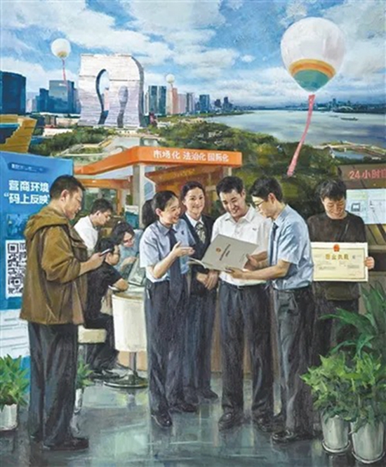 油画《浙江省三个“一号工程”——改革攻坚》,浙江省油画院集体创作。