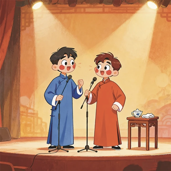 2025年初,国产AI大模型DeepSeek-R1上线,引爆了国内各行各业利用AI提升工作效率的探索,艺术领域亦不例外。AI创作的相声文本已初具雏形,捧逗角色语言特征明显,但以相声创作标准来看,仍显形似而神不足。例如,AI在构设相声“包袱”时,创作思维尚未与人类“同频”,往往不能创作出相声本应具有的“情理之中,意料之外”的包袱,表现为或笑点不足,或对话跳跃。同时,AI创作的相声文本中难见人工创作中常用的“三番四抖”“扑盲子”“吃了吐”等技巧,整体水平似“业余之作”。