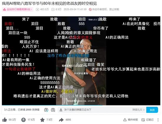 UP主@我是九日儿 作品《我用AI帮助八路军爷爷与80年未相见的老战友跨时空相见》