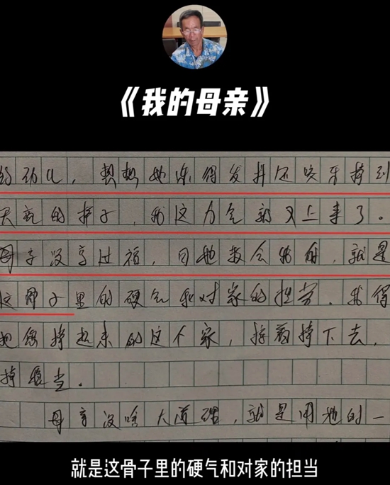 在接受抖音“时间的答案2025”栏目专访时,安大叔在对话中再次回忆起这篇文章,回忆起他的母亲。被问及这些文字能够打动全国网友的原因,他直言:“情真意切,它就是一种朴实的语言。”时隔三十年给母亲写一篇作文,对他而言,是一次迟来的深情告白,更是一次与自我人生的郑重和解。