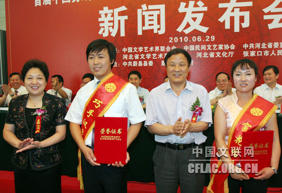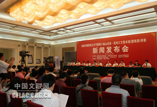 6月29日,首届中国剪纸艺术节暨第十届中国民间文艺山花奖·民间工艺美术奖(剪纸类)评奖活动新闻发布会在北京人民大会堂举行。原河北省副省长刘健生,中国文联党组成员、书记处书记夏潮以及中国民协分党组书记、驻会副主席罗杨,中国民协秘书长向云驹、副秘书长赵铁信、吕军,河北省委宣传部副部长康振海,河北省文联副主席潘学聪,河北省文化厅副厅长彭卫国,张家口市委常委、宣传部部长郑丽荣,蔚县县委书记王志军、县长燕旺林等出席发布会。发布会由中国民协副主席、河北省文联副主席郑一民主持。