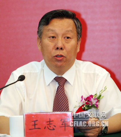 6月29日,首届中国剪纸艺术节暨第十届山花奖·民间工艺美术奖(剪纸类)评奖活动新闻发布会在北京人民大会堂举行。图为蔚县县委书记王志军在发布会上讲话。中国文联网 余宁 摄