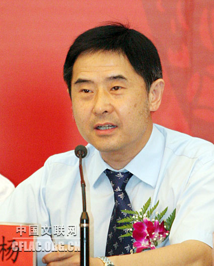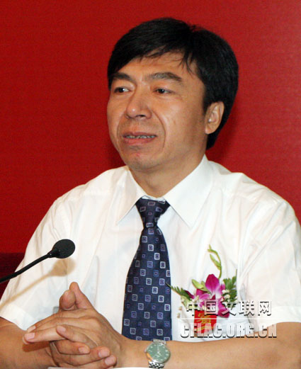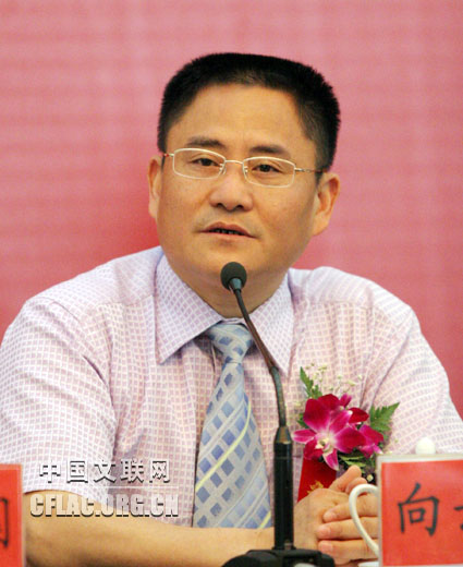 6月29日,首届中国剪纸艺术节暨第十届山花奖·民间工艺美术奖(剪纸类)评奖活动新闻发布会在北京人民大会堂举行。图为中国民协秘书长向云驹讲话。中国文联网 余宁 摄