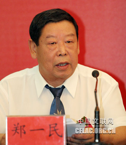 6月29日,首届中国剪纸艺术节暨第十届山花奖·民间工艺美术奖(剪纸类)评奖活动新闻发布会在北京人民大会堂举行。图为中国民协副主席郑一民主持发布会。中国文联网 余宁 摄