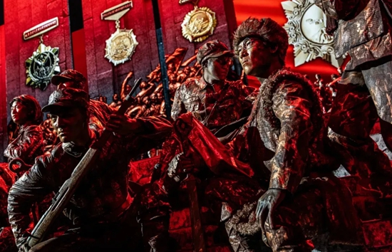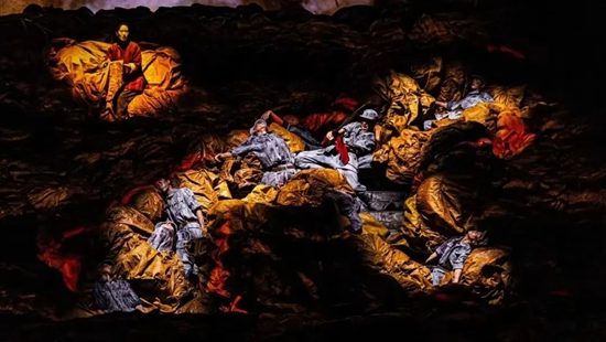 任冬生:与以往纪念演出相比,最大的不同在于这次我们与历史的对话方式。我们运用全域投影、数控机械等前沿技术,并非为了炫技,而是为了获得一种全新的叙事能力:一种能打破物理时空限制、更具沉浸感与动态变化的当代舞台语法。这让我们超越了历史的“再现”,实现了当下的“解读”与“对话”,形成史诗化的全景叙事语言。这是一次新的舞台语言的远征,亦是一次精神的溯回。