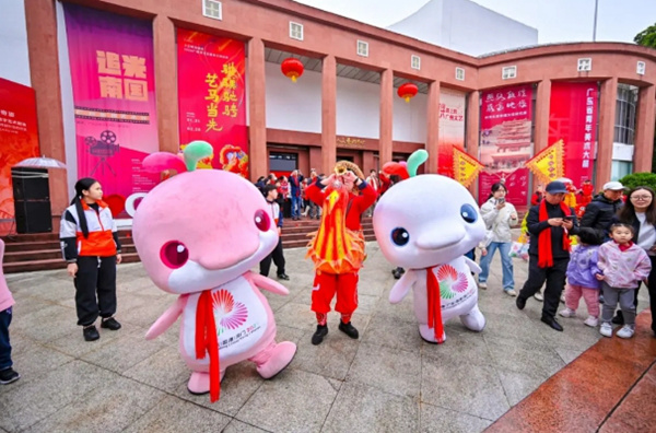 骏马奔腾,鱼跃龙门,在辞旧迎新之际,广州人民艺术中心处处喜气洋洋、诗意盎然,洋溢着浓郁的节庆氛围。广州市民间文艺家协会广府民间艺术团带来的传统民俗表演“盛装”亮相,造型独特的鳌鱼舞、趣味横生的鸡公榄,还有全运会吉祥物“大湾鸡”闪亮登场,共同为广大市民送上福运绵长的新春祝福,呈现一场充满文艺气质的“视听盛宴”。