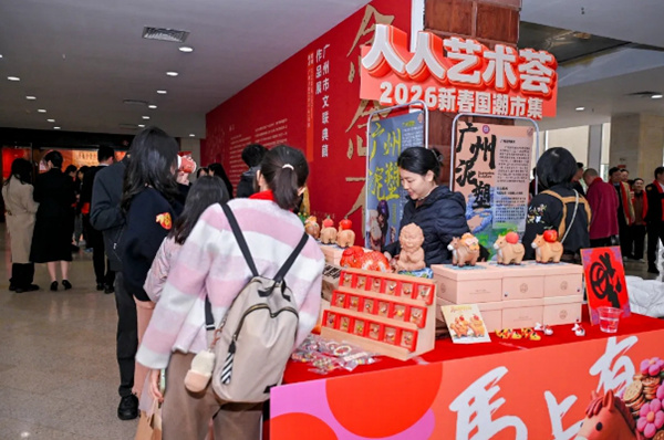 观民俗,逛文创,看非遗……“人人艺术荟”2026马年新春国潮市集在广州人民艺术中心如约开市,主办方设置艺术潮玩、美食等摊位,将传统春节元素与非遗等结合,推介非遗好物和创意潮品,“引燃”文艺消费新动能。