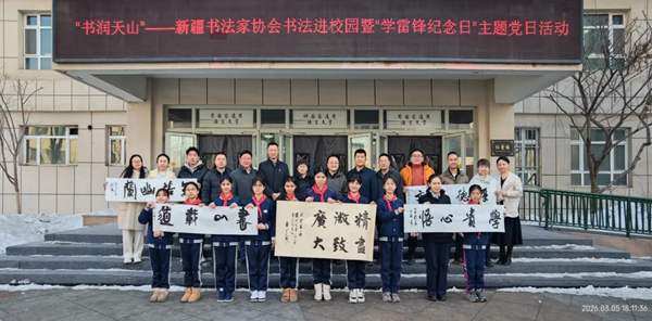 在第63个“学雷锋纪念日”来临之际,新疆书法家协会“书法进校园”暨“学雷锋纪念日”主题党日活动近日在乌鲁木齐市第四十四小学举行。本次活动紧扣2026年全国“学雷锋纪念日”统一主题,将书法艺术传承与党建活动深度融合,旨在通过文艺志愿服务弘扬雷锋精神,引导各族青少年在笔墨之间增进文化认同,铸牢中华民族共同体意识,激励广大青少年争做新时代的雷锋传人,为奋进“十五五”新征程凝聚精神力量。