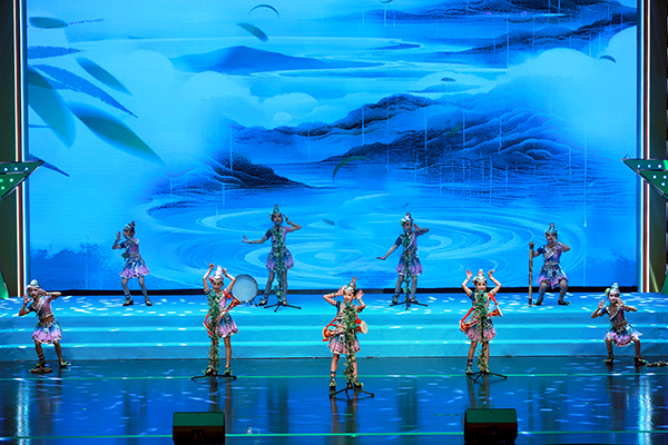 “青石板,古街巷,鸳鸯糖粥滋味长。鲈鱼肥,莼菜香,桨声伴随曲悠扬……”当《好时光》唱响时,大屏上小桥流水、桃红柳绿和丰富的江南物产让台下的孩子们仿佛闻到了糕点的甜香。来自梅舞嘉音童声合唱团的薛善菡穿着瑶族服饰演唱了《有山就有歌》,她开心地说:“我身上戴着鲜花,歌曲在演奏中使用了雨棍、果壳铃等自然乐器,它们让我感受到了来自大自然的快乐。”