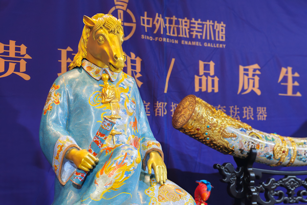 The booth of the Sino-Foreign Enamel Art Gallery is seen at an indoor temple fair in Beijing on February 23, 2026. /CGTN