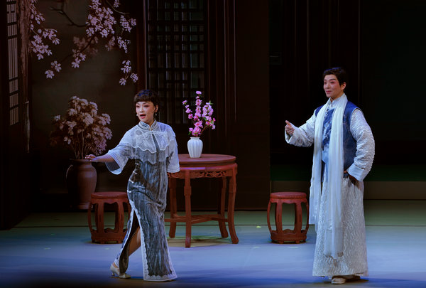 The newly composed Shanghai opera Return on a Snowy Night premiered at the Hongqiao Art Center on Tuesday. [Photo provided to China Daily]