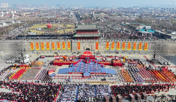The 2026 National Drum King Competition is held on Sunday in the ancient town of Zhengding county in Shijiazhuang, Hebei province. [Photo by Liang Zidong/For chinadaily.com.cn]
