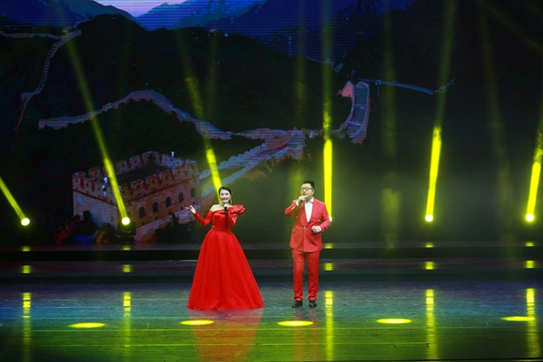1月13日,“第34届大众电影百花奖优秀影片展映”在陕西大剧院开幕。图为周澎、李思宇演唱歌曲《美丽中国走起来》、《望长安》。