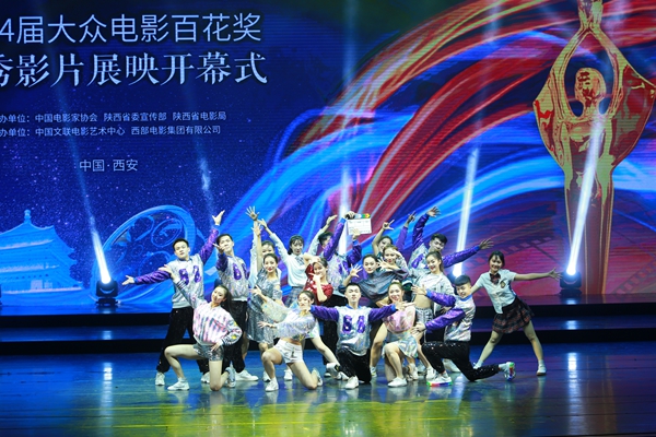 1月13日,“第34届大众电影百花奖优秀影片展映”在陕西大剧院开幕。图为西安乐舞西音演艺团队表演歌舞《光影如梦》。