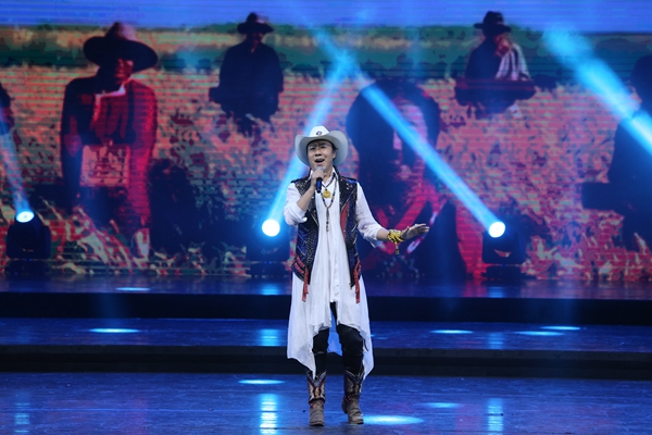 1月13日,“第34届大众电影百花奖优秀影片展映”在陕西大剧院开幕。图为斯琴高丽演唱歌曲《犯错》。